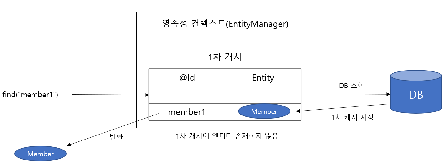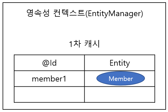 em.persist(member)를 통해 영속성 컨텍스트의1차 캐시에 엔티티 저장- 영속성 컨텍스트 내부에